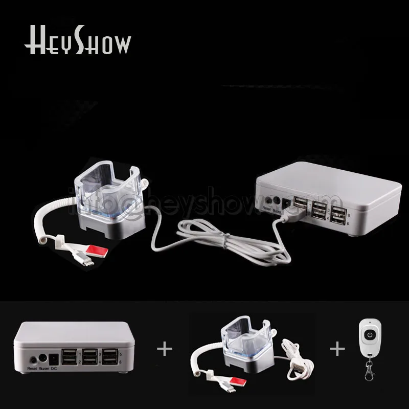 discount 6 8 10 Ports HeyShow Chargeable Mobile Phone Security Stand Cellphone Alarm Box Ipad Anti Theft Ret