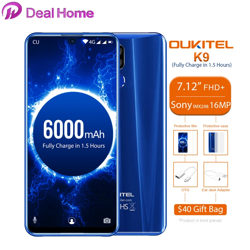 wonderful Original Oukitel K9 7.12" Android 9.0 MTK6757 Octa Core 2.3GHz Smartphone Fingerprint 6000mAh 1080*